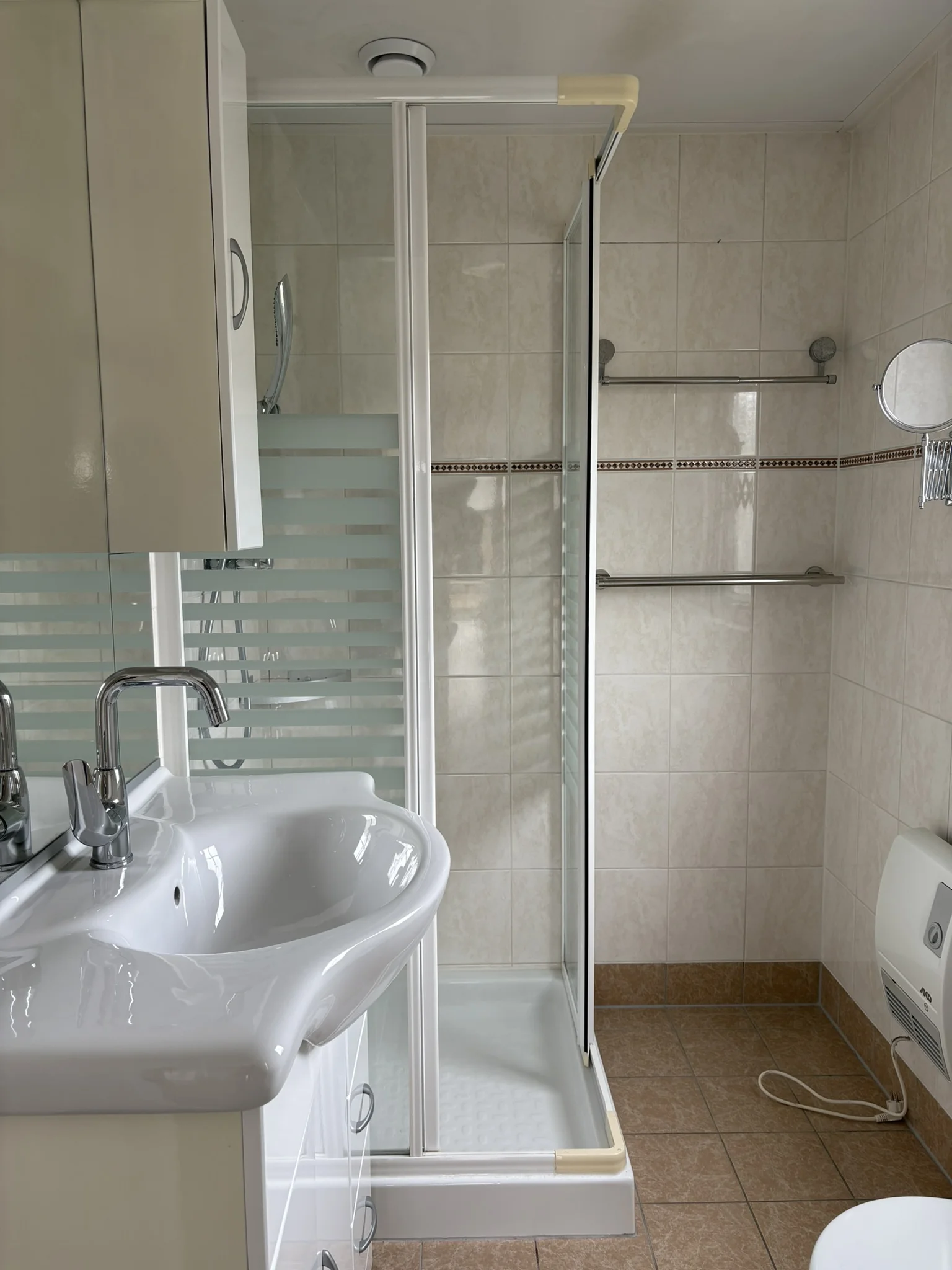 - Slaapkamer met twee eenpersoonsbedden (tegen elkaar geschoven)