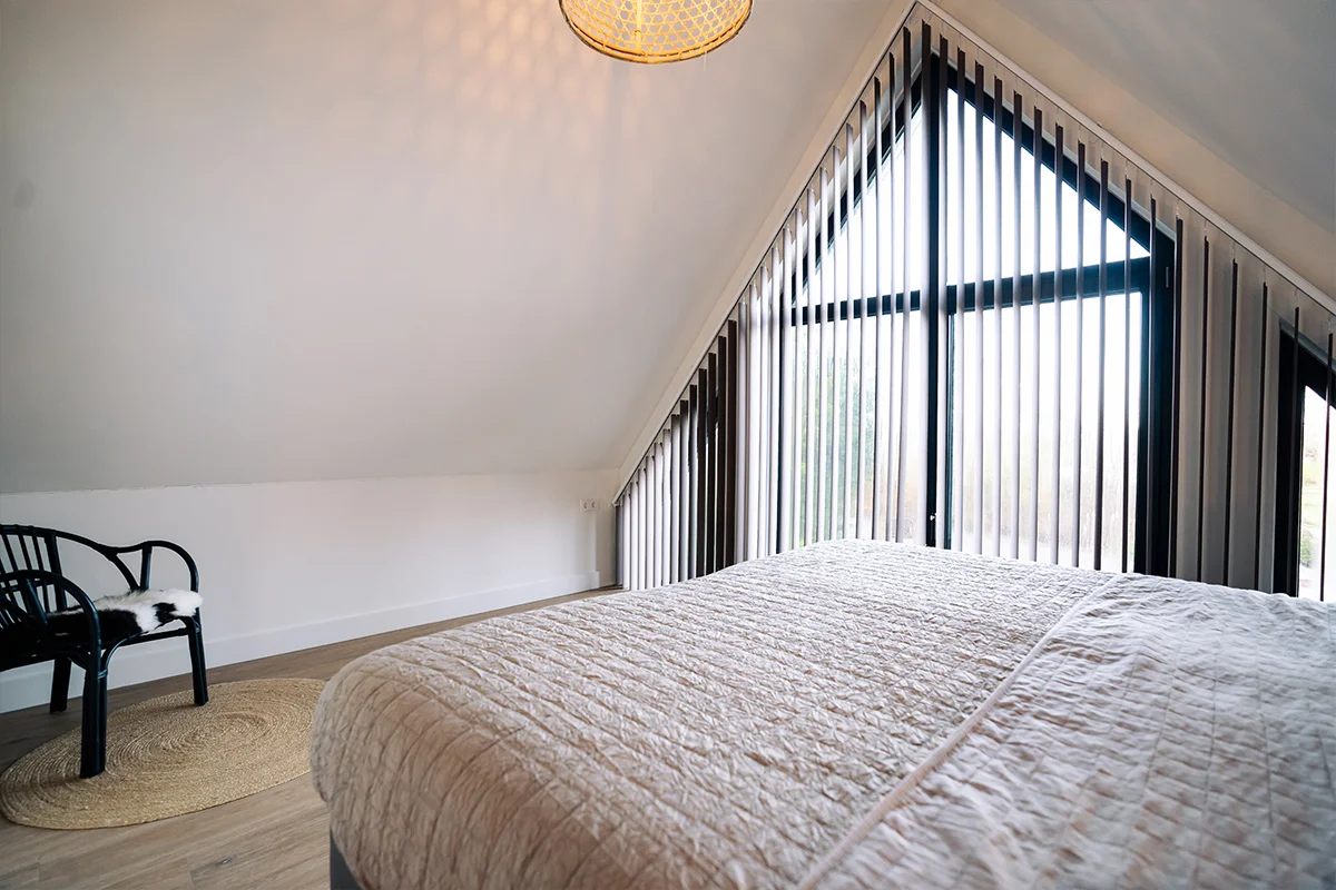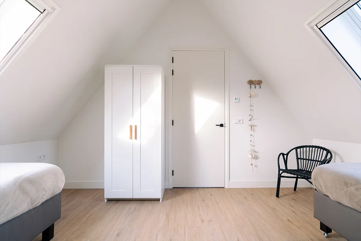 Ons vakantiehuis is recent gebouwd en modern en compleet ingericht. In de woonkamer vind je een gezellige zithoek met Smart-TV. De luxe open keuken met eethoek is voorzien van alle gemakken. De badkamer is gelegen op de begane grond en beschikt over een luxe douche met wastafelmeubel. Er is een separaat toilet. Op de bovenverdieping vind je twee ruime slaapkamers, beide voorzien van twee eenpersoonsbedden met dekbedden.